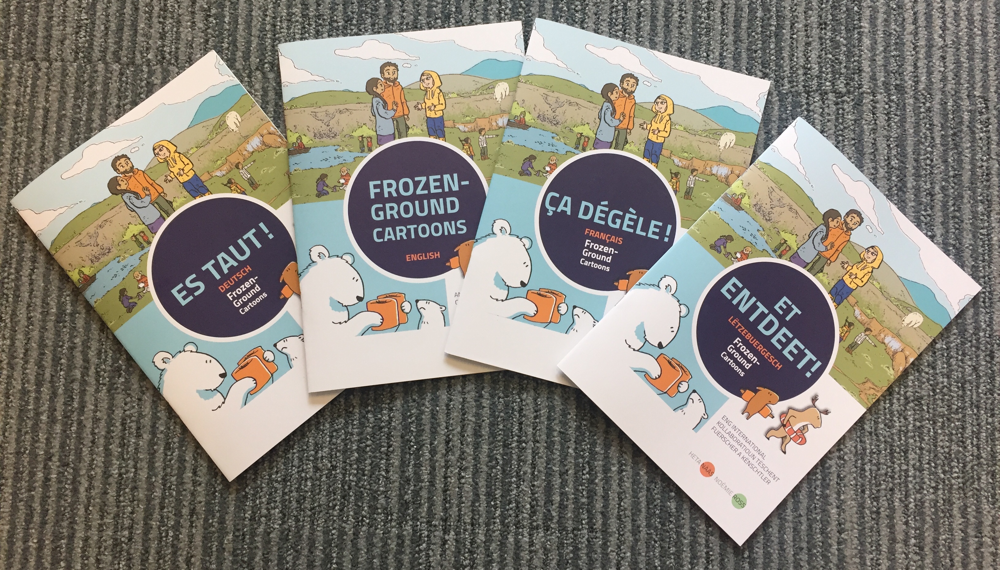 An de Lëtzebuerger Schoulen zirkuléiert den Ament d’Comic-Broschür „Et entdeet!“ Et sinn d’„Frozen-Ground Cartoons“ op Lëtzebuergesch. Et ass d’Resultat vun enger internationaler Kollaboratioun tëschent Fuerscher a Kënschtler, déi dofir sensibiliséiert, datt de Permafrascht op ëmmer méi Plazen ëmmer méi séier entdeet.