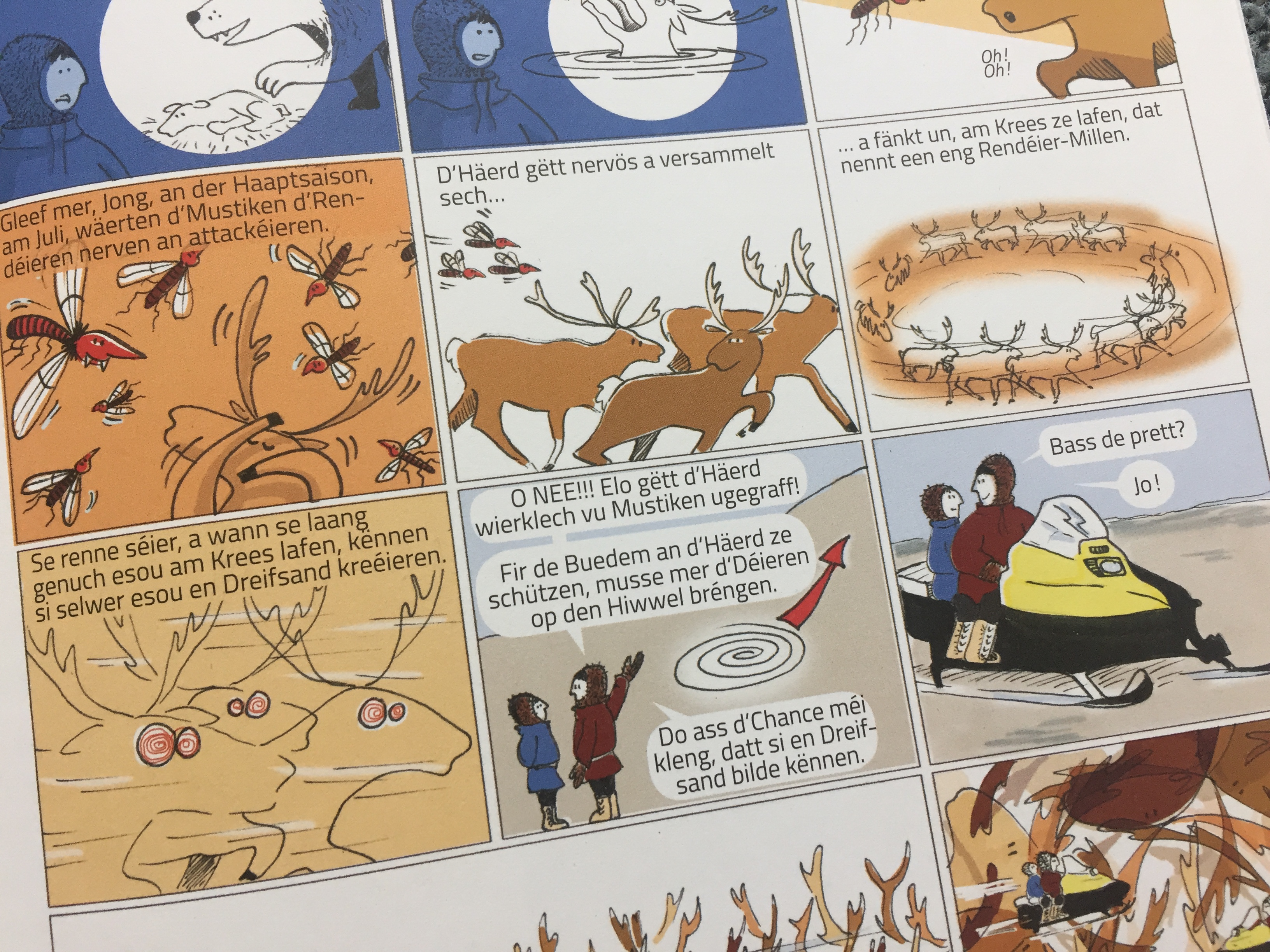 Déi ënnerhalsam an informativ Broschür gëtt et an e sëllege Sproochen, dorënner och Lëtzebuergesch. Op Initiativ vum SCRIPT hunn e puer Lycéesschüler de Comic iwwersat, am Zenter fir d’Lëtzebuerger Sprooch gouf en nogelies. Ënnerstëtzt gouf de Projet ë. a. och nach vum FNR, dem „natur musée“ a polar.lu.