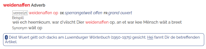 Déi „nei” Artikele sinn all mam LWB verlinkt. Esou kann den interesséierte User kamoud tëschent deenen zwee Dictionnairen hin- an hiersurfen.