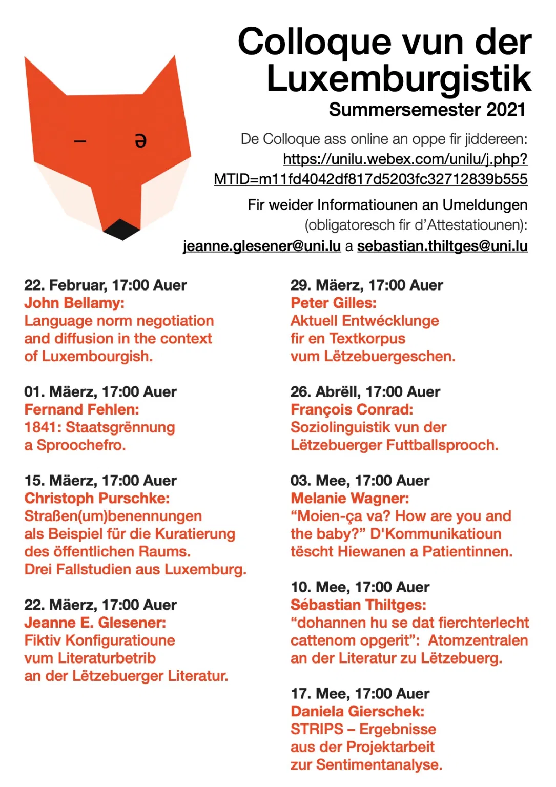Virtuelle Colloque vun der Luxemburgistik – Summersemester 2021