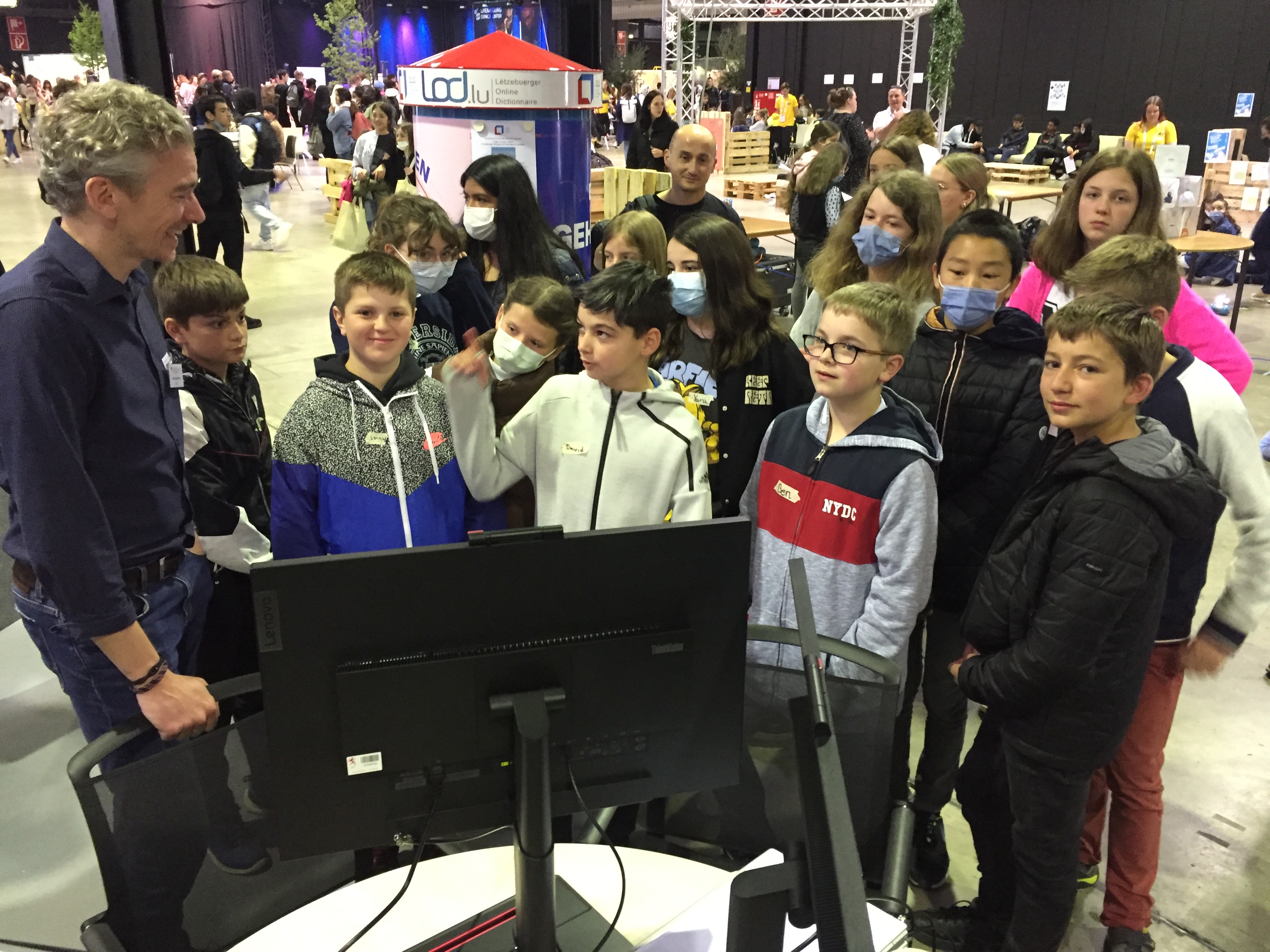 An natierlech hu mer eis iwwer all Besuch gefreet, direkt méindes koum sech zum Beispill den Educatiounsminister Claude Meisch informéieren a konnt bei der Demonstratioun vun engem Tool fir Sproocherkennung matmaachen. Hie war beandrockt, mir ware begeeschtert!
