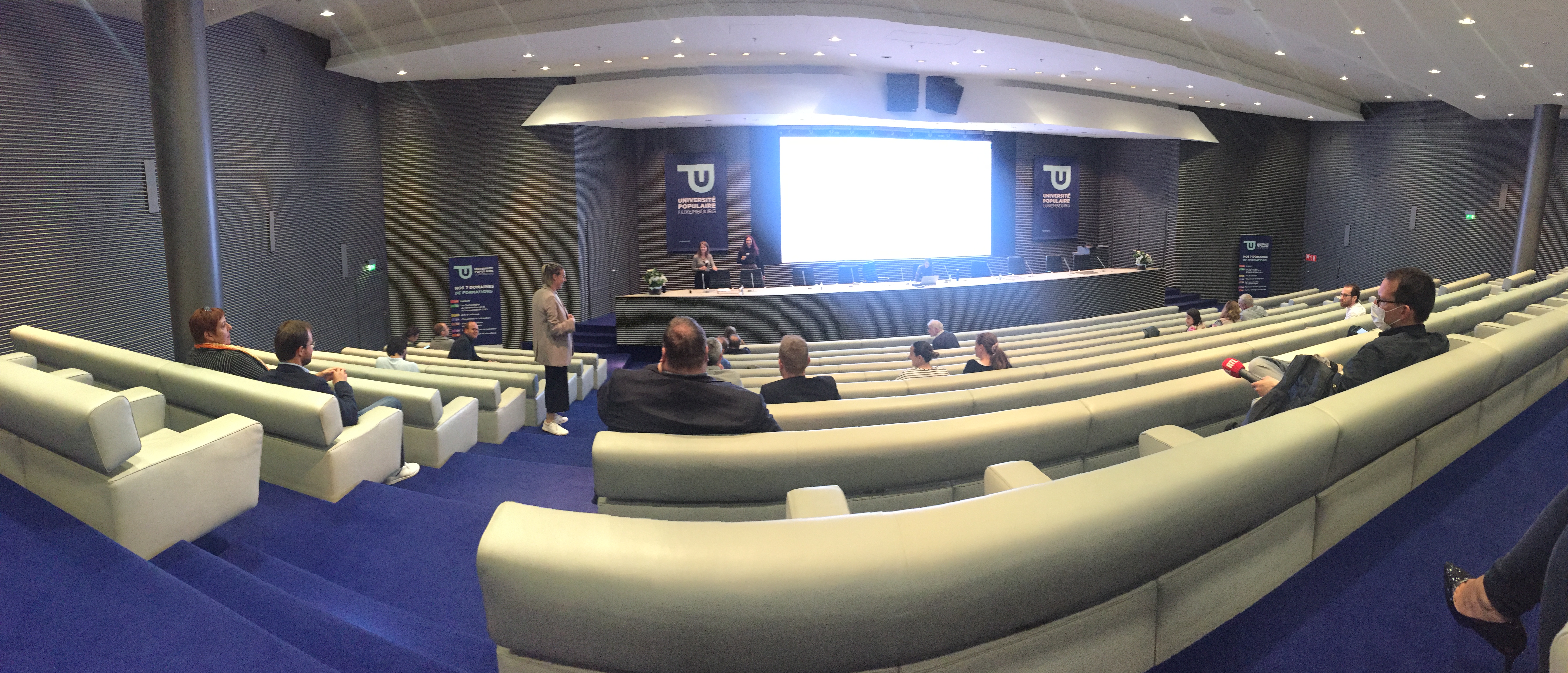 Den Optakt war de 7. Juni an der Université Populaire am Terres-Rouges-Gebai um Belval (Foto hei driwwer), den 9. Juni war dunn déi zweet Statioun zu Iechternach am Lycée (Foto hei drënner) ...
