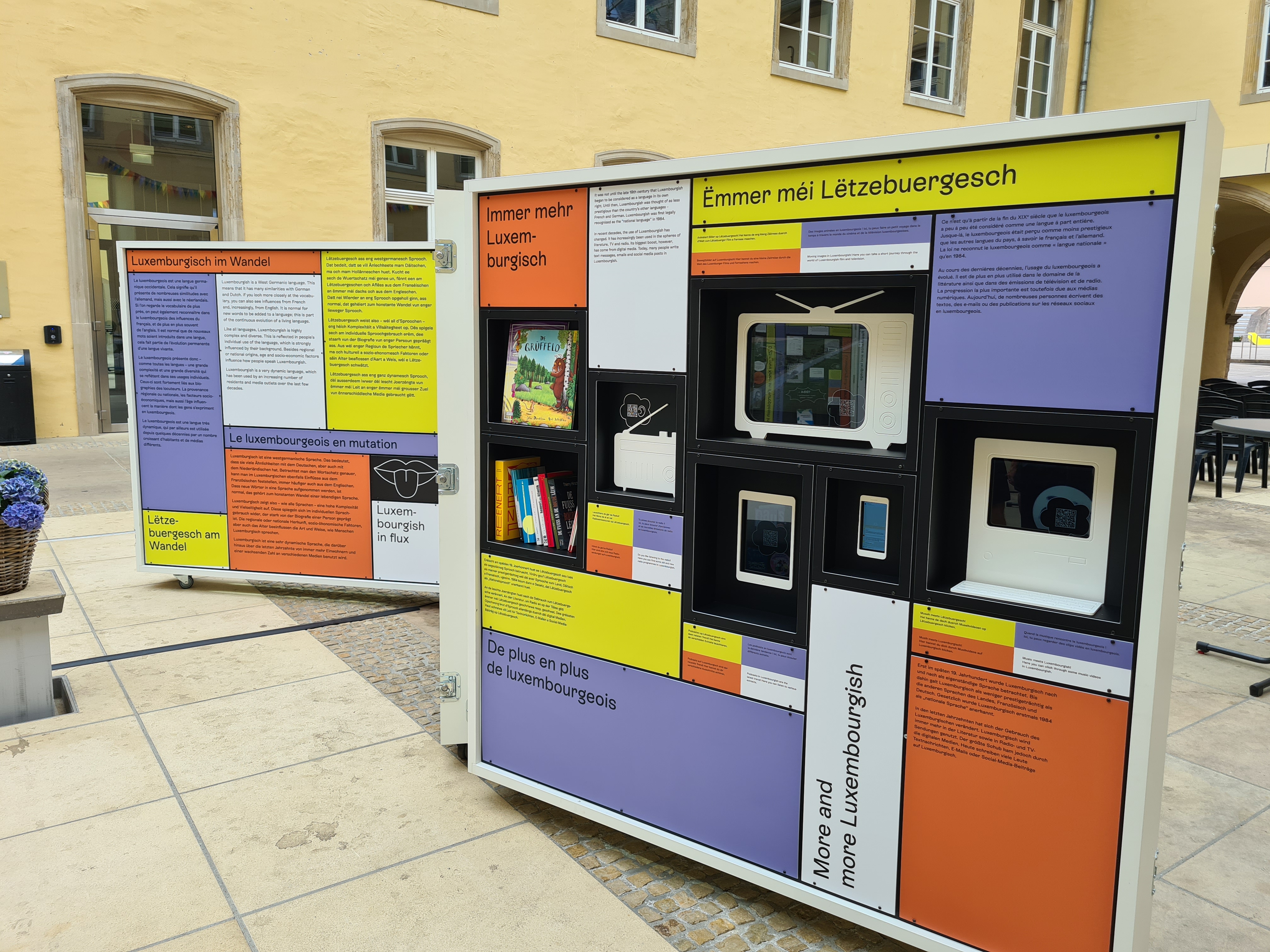 Déi nei mobil Ausstellung vum Zenter fir d’Lëtzebuerger Sproch (ZLS) mam Titel „D’Lëtzebuerger Sprooch(en)“ gouf en Donneschdeg, 29. Juni 2023 vum Minister Claude Meisch an der Agora vun der Abtei Neimënster presentéiert. Do war se awer just e puer Stonnen ze gesinn ... éier se elo op d'Rees geet. Heidrënner fannt Dir och de Kontakt, wann Dir d'Expo eemol bei Iech wëllt weisen.